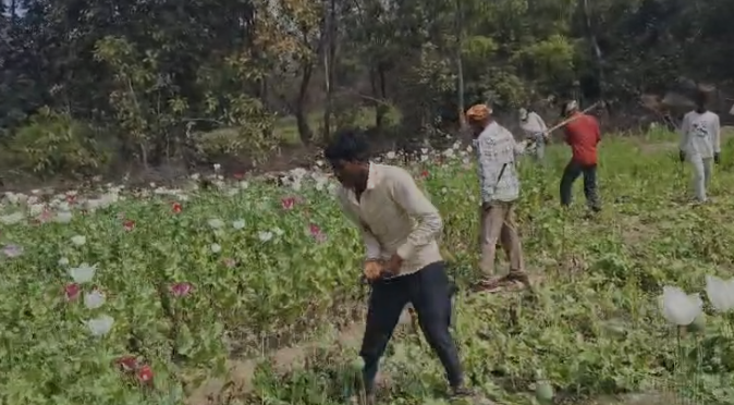 Aurangabad : जिले के अतिनक्सल प्रभावित मदनपुर प्रखंड में सुरक्षा बलों ने अवैध अफीम की खेती के खिलाफ बड़ी कार्रवाई की है। घने जंगलों और पहाड़ी क्षेत्र में फैली लगभग 15 एकड़ भूमि पर उगाई गई अफीम की फसल को पूरी तरह नष्ट कर दिया गया। यह अभियान बादम पहाड़ के आसपास के दुर्गम इलाके में चलाया गया।