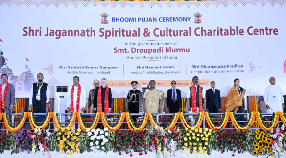 Jamshedpur : कदमा स्थित मरीन ड्राइव, जमशेदपुर में श्री जगन्नाथ आध्यात्मिक एवं सांस्कृतिक केंद्र के निर्माण के लिए भूमि पूजन कार्यक्रम गरिमामय वातावरण में संपन्न हुआ। इस अवसर पर भारत की माननीय राष्ट्रपति द्रौपदी मुर्मु, झारखंड के माननीय राज्यपाल संतोष कुमार गंगवार, माननीय मुख्यमंत्री हेमन्त सोरेन तथा माननीय केंद्रीय मंत्री धर्मेंद्र प्रधान की विशेष उपस्थिति रही।