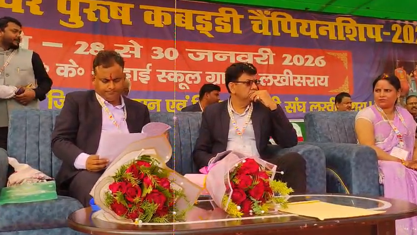 Lakhisarai: बिहार राज्य कबड्डी संघ के निर्देशन में और लखीसराय कबड्डी संघ की मेजबानी में 51वीं बिहार राज्य सीनियर पुरुष कबड्डी चैंपियनशिप प्रतियोगिता का आयोजन आज शहर स्थित केआरके मैदान में किया गया। तीन दिवसीय इस प्रतियोगिता का उद्घाटन डीएम मिथिलेश मिश्रा और संरक्षक डॉ. प्रवीण कुमार सिन्हा ने दीप प्रज्वलित कर किया। उद्घाटन समारोह में डीडीसी सुमित कुमार, नगर परिषद सभापति अरविंद पासवान सहित कई गणमान्य व्यक्ति उपस्थित रहे।