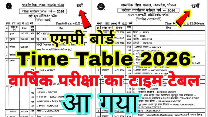 मध्य प्रदेश बोर्ड के अनुसार, 2026 की बोर्ड परीक्षाएं निम्नलिखित तिथियों पर आयोजित की जाएंगी: