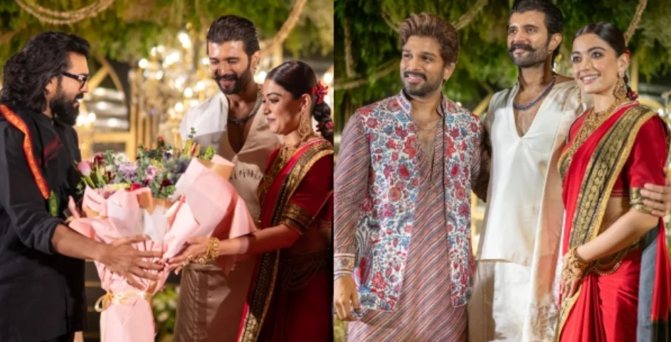 Rashmika Vijay Reception रश्मिका और विजय की खुशी में साउथ फिल्म इंडस्ट्री के कई बड़े सितारे भी शामिल हुए। ‘पुष्पा’ के सुपरस्टार अल्लू अर्जुन भी इस मौके पर नजर आए।