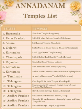 इनके अलावा कर्नाटक, तेलंगाना, तमिलनाडु, गुजरात, असम और छत्तीसगढ़ के कई मंदिरों में भी अन्नदान किया जाएगा।