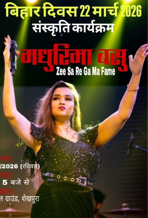Sheikhpura इस वर्ष के कार्यक्रम का सबसे बड़ा आकर्षण शाम 5:00 बजे से शुरू होने वाली सांस्कृतिक संध्या होगी। इसमें मशहूर टीवी रियलिटी शो ‘सा रे गा मा पा’ की चर्चित कलाकार मधुरिमा बसु अपनी सुरीली आवाज से श्रोताओं को मंत्रमुग्ध करेंगी। उनके साथ कई अन्य स्थानीय और आमंत्रित कलाकार भी मंच साझा करेंगे, जो अपनी कला के माध्यम से बिहार की समृद्ध सांस्कृतिक विरासत की झलक पेश करेंगे।