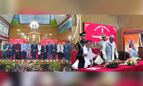 शिलांग: मेघालय की राजनीति में मंगलवार को बड़ा उलटफेर देखने को मिला। राज्य मंत्रिमंडल में होने वाले फेरबदल से ठीक पहले सरकार के आठ मंत्रियों ने सामूहिक इस्तीफा दे दिया। मुख्यमंत्री कोनराड के. संगमा ने तुरंत राजभवन पहुंचकर राज्यपाल सी. एच. विजयशंकर को इन इस्तीफों की जानकारी दी और उनका औपचारिक पत्र सौंपा।