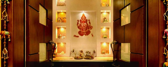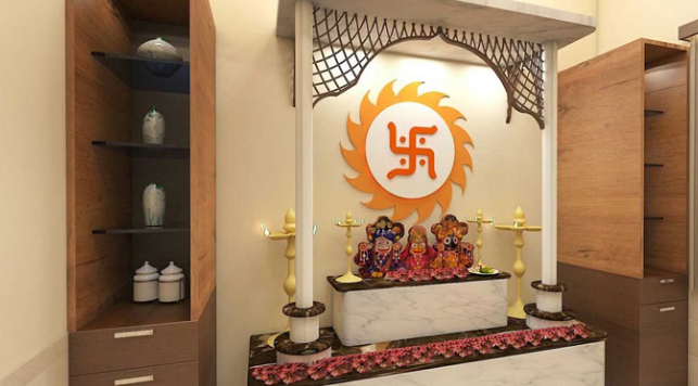 - रंगों का चयन: पूजा घर की दीवारों पर हल्के और सौम्य रंगों का प्रयोग करें, जैसे—सफेद, हल्का पीला, क्रीम या आसमानी नीला। गहरे और भड़कीले रंगों से बचें।